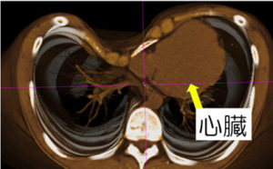 これは中程度の漏斗胸の心臓が圧迫されている画像です。